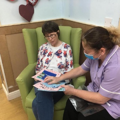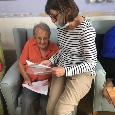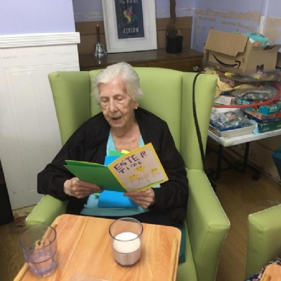 An example of our links are when all of the children either drew a picture, wrote a card or letter to establish contacts with the residents and they used these messages to decorate the communal lounge in the care home for Easter - here are a few photos of the residents receiving them: